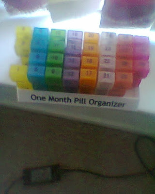 ...7.30am :I take my stomach acid inhibitor, and homeopathic remedy. I get today's container out of its' doset box-which has to be regularly updated. I make a hot drink, and a big mug of electrolyte and sugar and glug both. If pain is bad I switch on my electric heat pad. I get out my pain diary for the day and make a note of how I slept, and any symptoms. I measure out the maximum dosage of paracetamols for the day and put it an empty doset box, so I can't take too many. I take anti-depressants, supplements, Vitamin D and pain medications ( making a note of what I've taken and when the next dose will be, and setting the alarm on my phone). (If pain already bad I take NSAID's and Opioids, and clamp heat to my body until I am able to move.) I put some lavender oil on to burn, and I have something small to eat. I measure and note my lung capacity and take my preventative inhaler ( if I need to take my reliever I will take that too.) I note down that I have had my inhaler ( I have brain fog and take things twice or not at all if I do not do this). I do a 10 minute guided- meditation. I write some gibberish in my Morning Pages, and put my hair in a pony tail and put on my medical alert bracelet. Then it is time to have breakfast...
